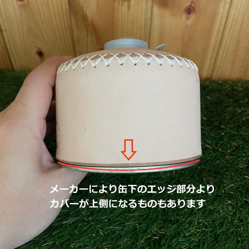 メーカーにより缶サイズが若干異なりますので、一部メーカーはエッジ部分にカバーがかぶらないものもあります。(スノーピークなど)<画像7枚目参考>