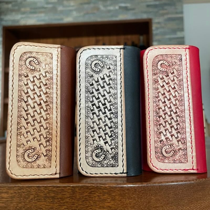 馬蹄とバスケット模様を刻み込んだキーケース。