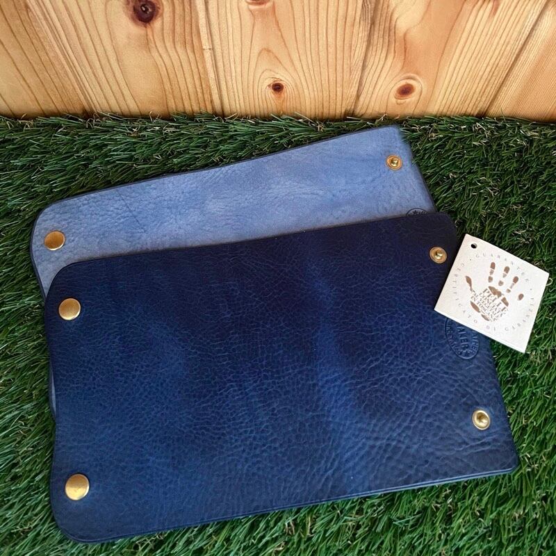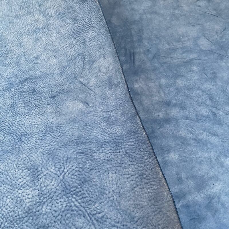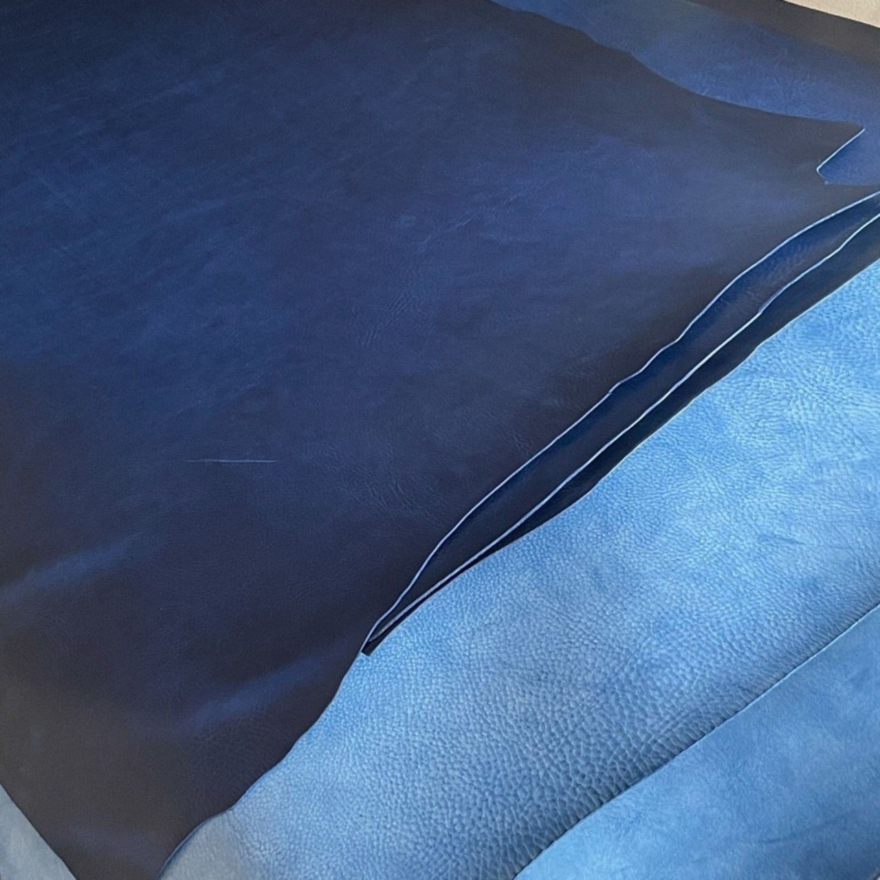 ※色味につきましては、濃くも薄くも見えますので商品画像を数点掲載しておりますので各自ご判断ください。アマゾニアは濃いめの青、アラスカは白いワックスがついている青となっております。また、個体差の大きい皮革となっておりますので、素材の特性としてご理解をお願いいたします。
