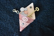 1枚の革を折りたたみ、ボタン(バネホック)で2ヶ所留めて、三角形にしています。